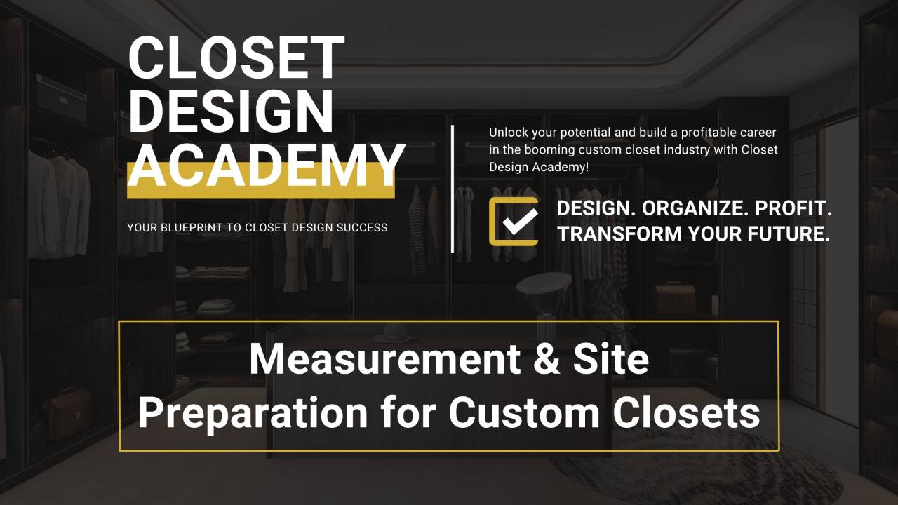 This comprehensive course teaches you how to take precise measurements and properly prepare installation sites to ensure flawless closet installations every time. Measurement errors are the leading cause of installation problems, material waste, and client dissatisfaction in the closet industry. This course provides you with the systematic approach, essential tools, and proven techniques used by top professionals to eliminate costly mistakes and deliver exceptional results.